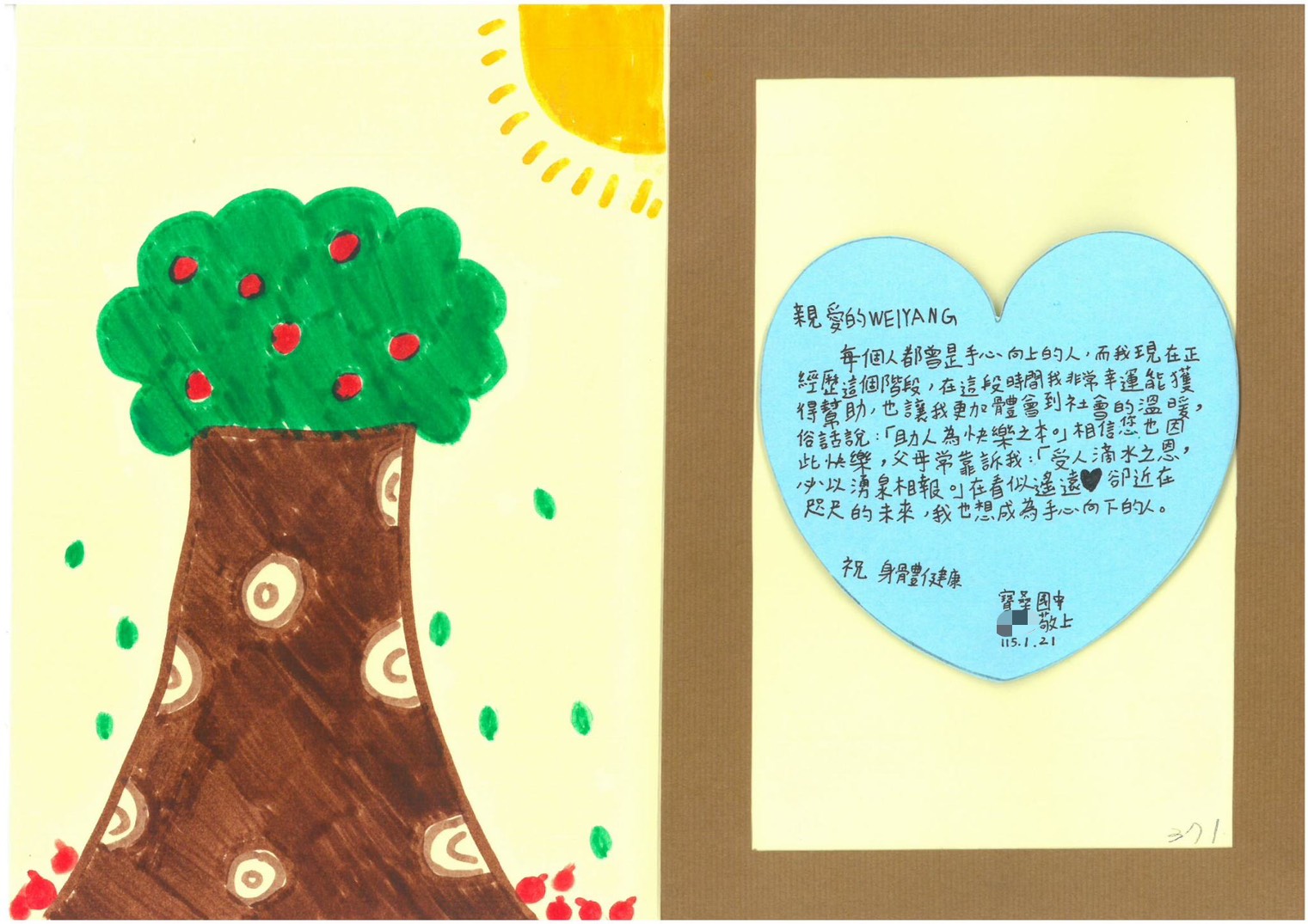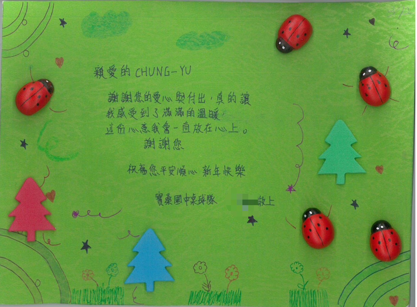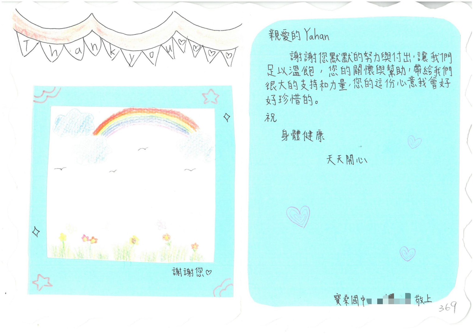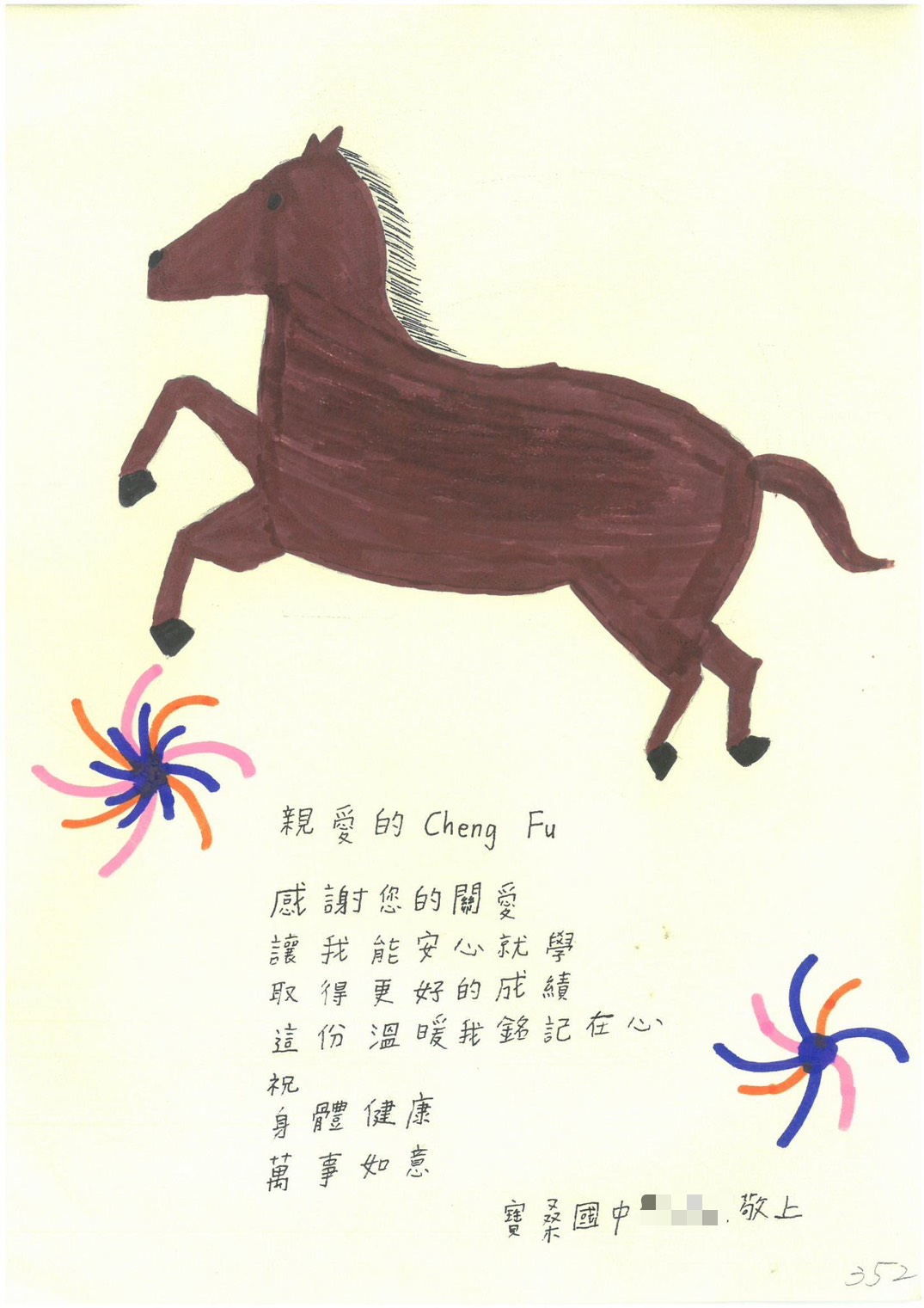 收到年菜的孩子也用手繪卡片表達對協會捐助者的感謝