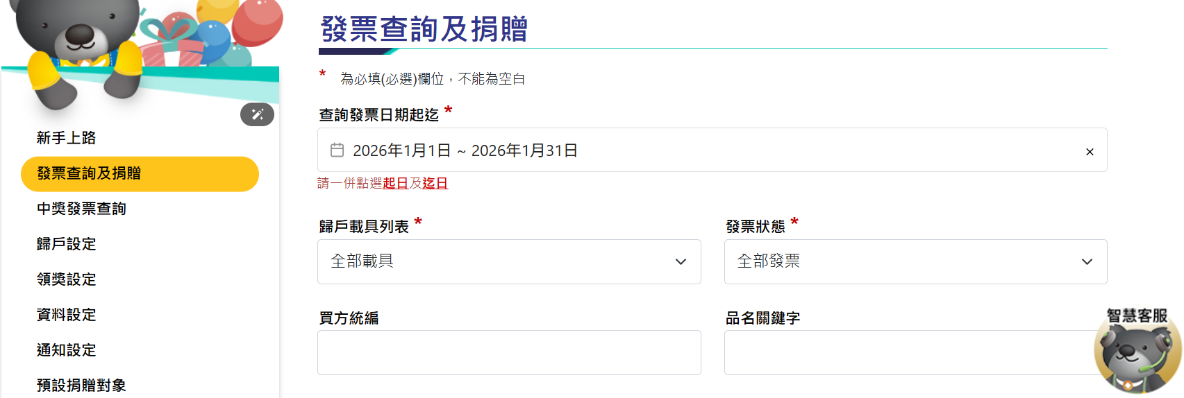• 點選「發票查詢及捐贈」