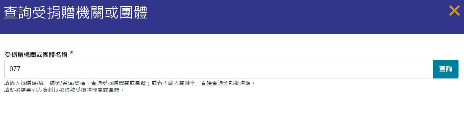 • 搜尋受贈單位:077(瑪潮關懷協會)